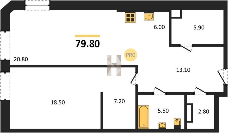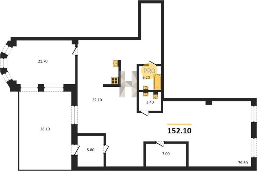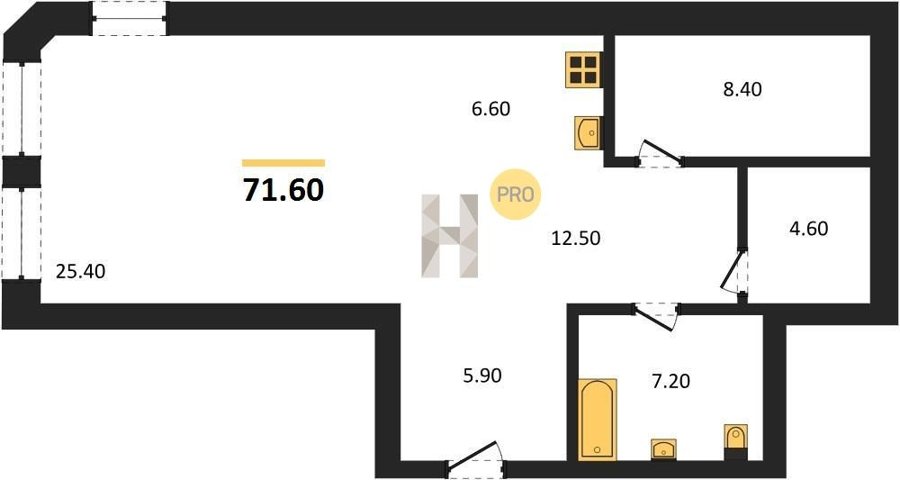 Площадь от 72.7 м2